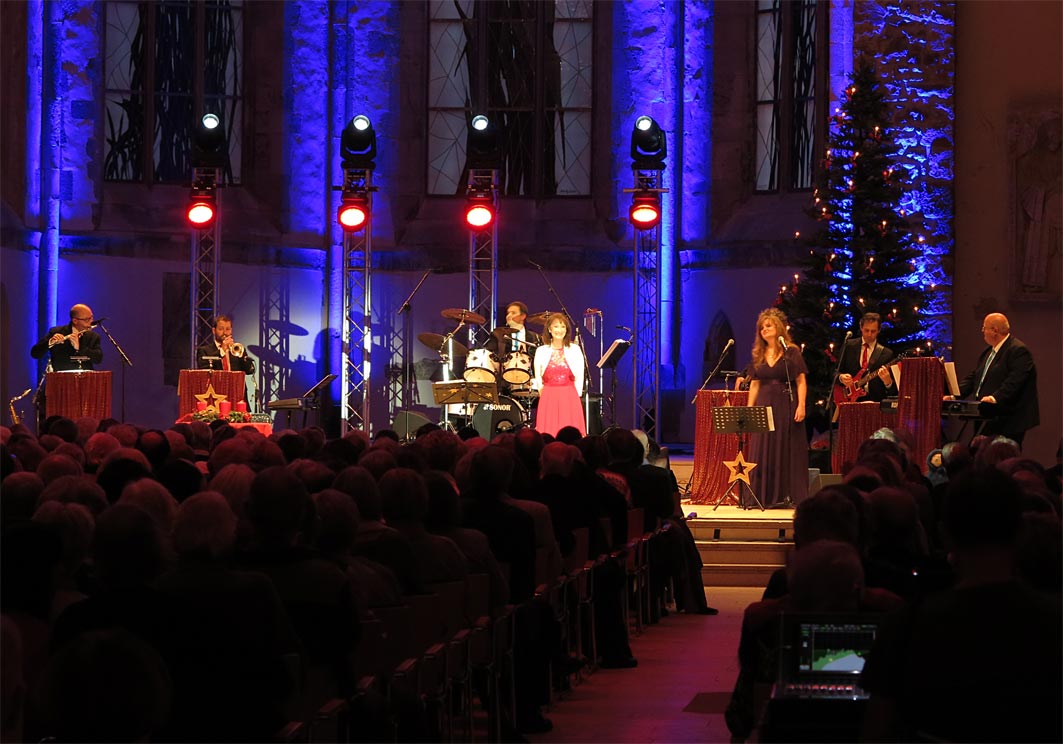 Kaum zu glauben, aber alle Weihnachtskonzerte sind nun leider schon wieder vorbei.Es waren unglaublich schöne Tage mit meinen tollen Kollegen Anni Perka und Reiner Kirsten. Ein riesiges Dankeschön für die Harmonie, die während der ganzen Tournee herrschte, auch an Lucas vom Ton und Christian vom Licht und an unseren Tourneeleiter Michael. Jeden Abend zauberten sie ein kleines Weihnachtswunderland auf die Bühne und wir alle spürten, dass wir das Publikum immer auf die nun kommenden Weihnachtsfeiertage einstimmen konnten. Nun bereiten wir uns alle auf unser persönliches Weihnachtsfest vor und freuen uns schon sehr auf die besinnlichen Tage. Auch im nächsten Jahr gibt es wieder einige Weihnachtskonzerte, Ihr könnt sie unter Termine sehen. Frohe Weihnachten Gaby Albrecht |