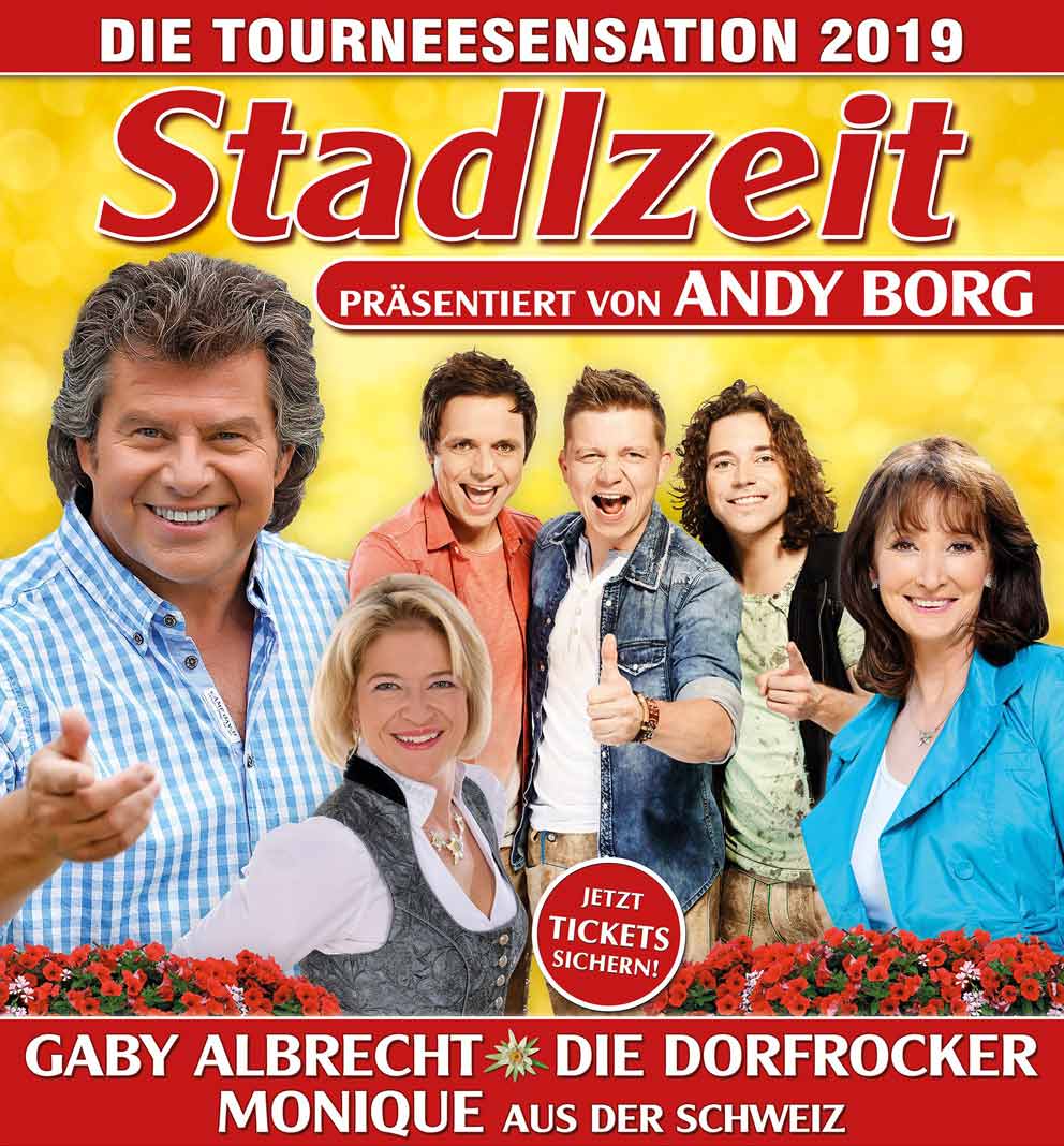![]() Leider ist die Stadtlzeit nun auch schon wieder vorbei. Die letzten Konzerte waren noch einmal richtige Höhepunkte. Wir alle sind glücklich, dass dieses abwechselungsreiche Programm so ein großer Erfolg war. Andy Borg sprühte jeden Tag regelrecht vor Energie und war einfach ein toller Gastgeber. Auch mit Monique und den Dorfrockern haben wir viel gelacht. Es war schön mit so wunderbaren Kollegen unterwegs zu sein. Vielen Dank an alle, auch an die Technik und unsere Tourneeleiterin Claudia, für die Zeit, die wir mit einander verbracht haben. Herzlich Gaby Albrecht |